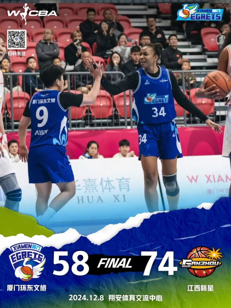 12月8日,WCBA常规赛第八轮,厦门环东文旅主场再战江西赣星。上场比赛两队的首次交锋中,厦门环东文旅经过双加时鏖战完成19分逆转,取得主场首场胜利。本场比赛再战江西赣星,希望队员们能够保持对内线的冲击力,延续积极的逼抢,同时控制好自身失误,争取在主场能够再度拿下对手。
