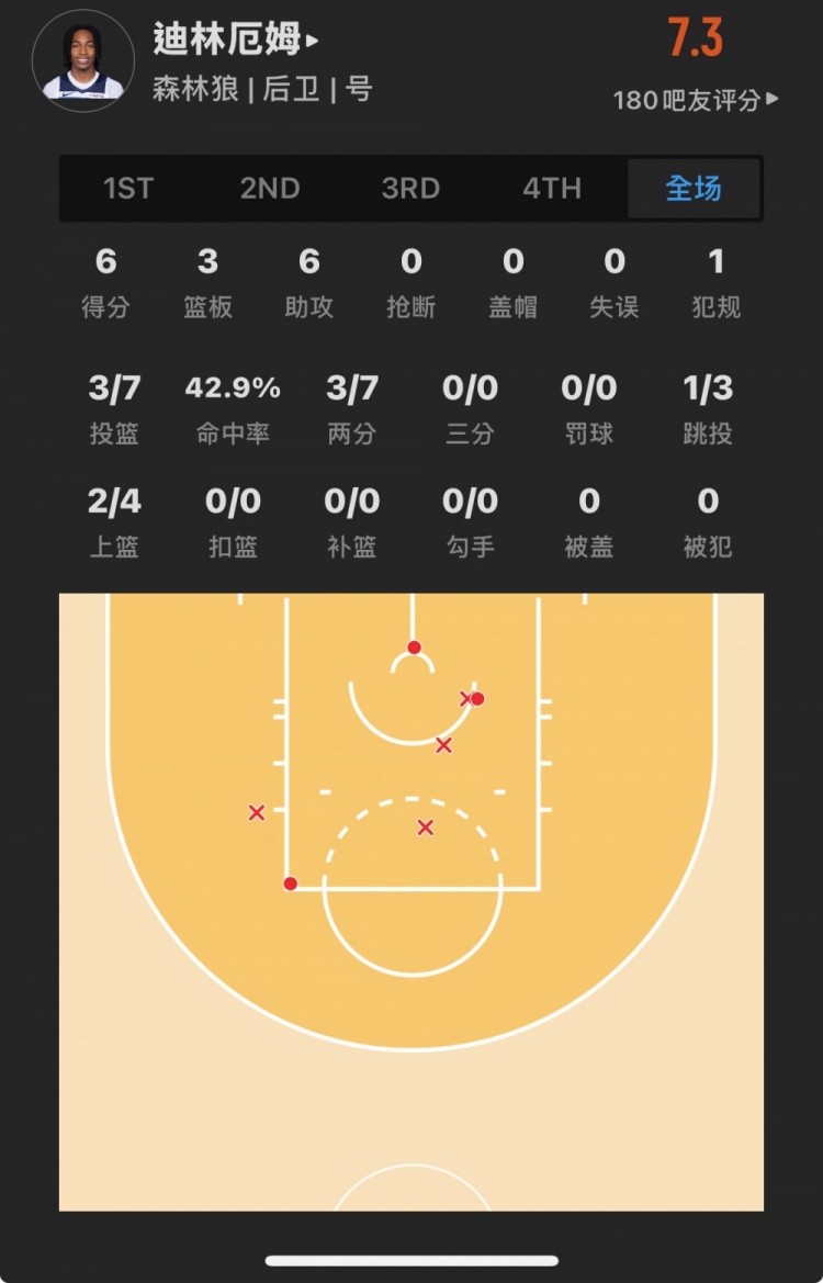 森林狼8号秀 罗布-迪林厄姆 登场21.3分钟