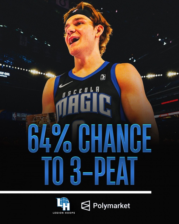 预测市场平台Polymarket预测麦克朗达成三连冠的几率为64%。