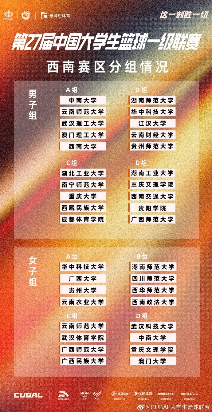 - 第27届CUBAL男子组:北大与北师大同组 清华与中国海洋大学同组