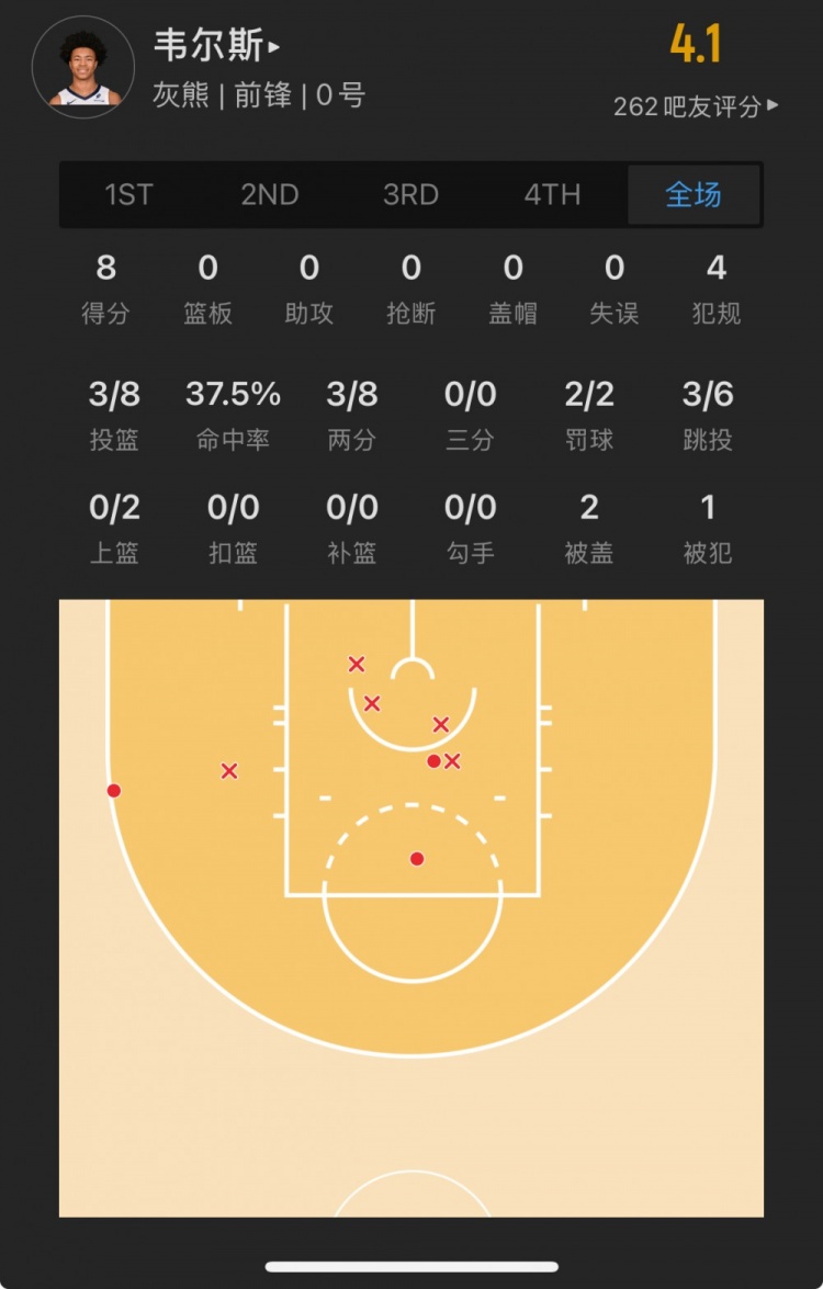 灰熊39号秀 杰伦-韦尔斯 登场17.7分钟