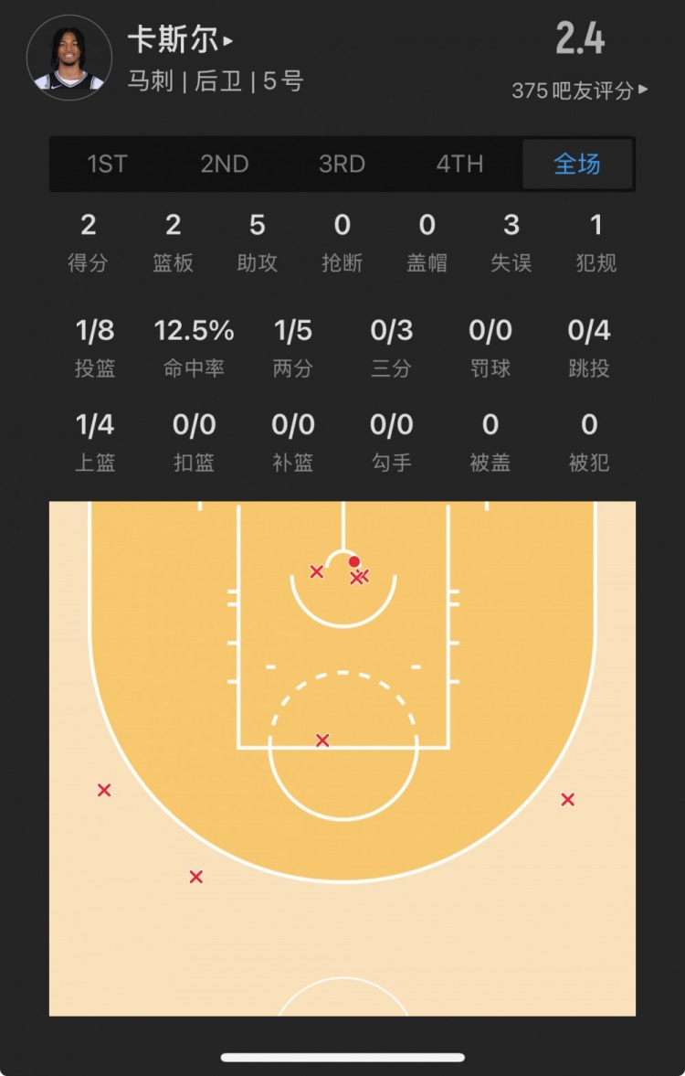马刺4号秀 斯蒂芬-卡斯尔 登场23.0分钟