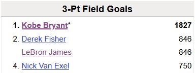 - 詹姆斯湖人生涯三分命中数超越费舍尔 独居队史第2&仅次科比