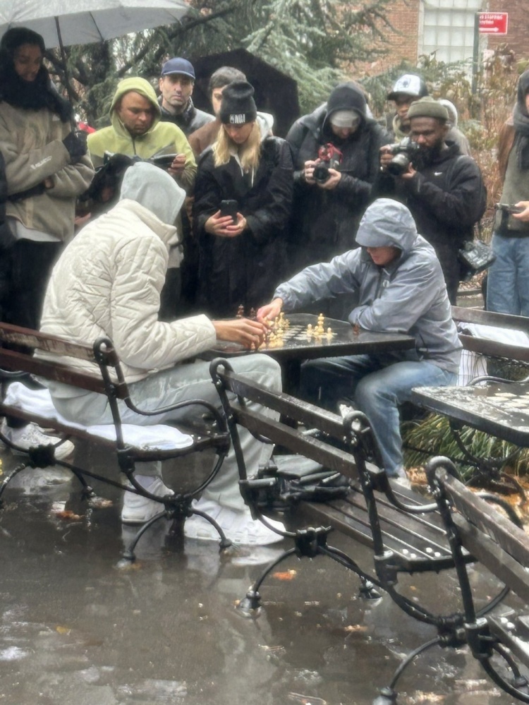- 还真去了文班早晨前往华盛顿广场公园 与人冒雨对弈
