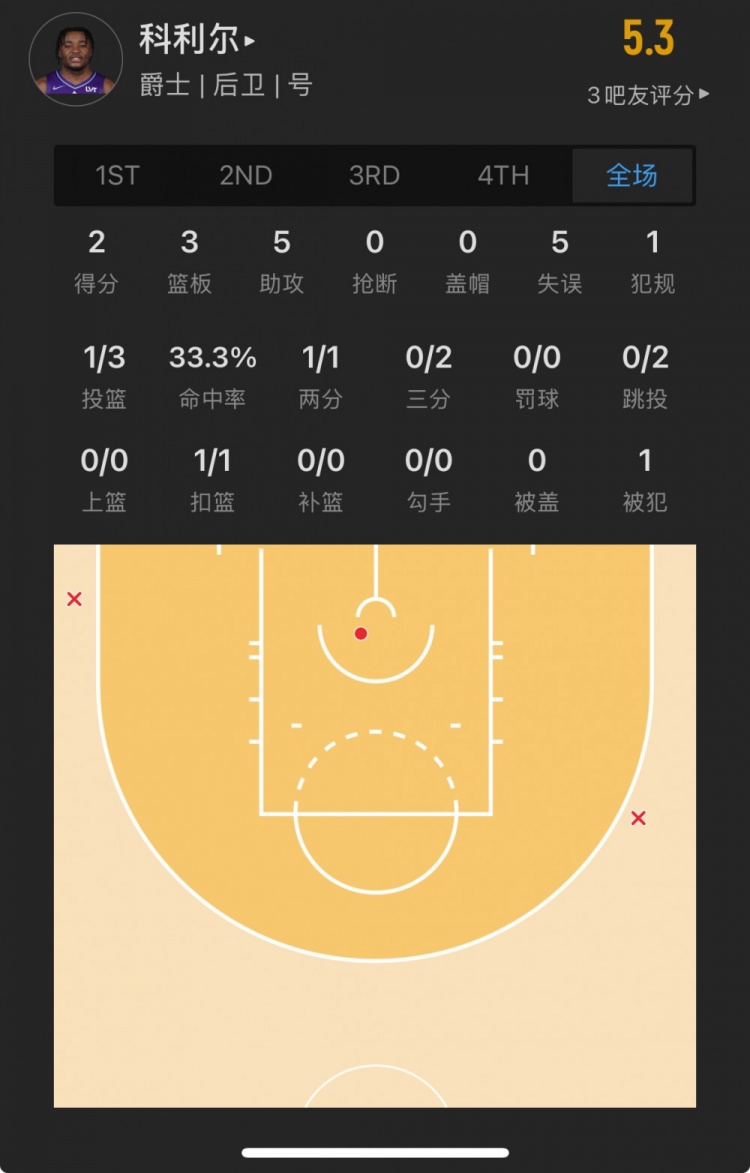 爵士29号秀 以赛亚-科利尔 登场19.4分钟