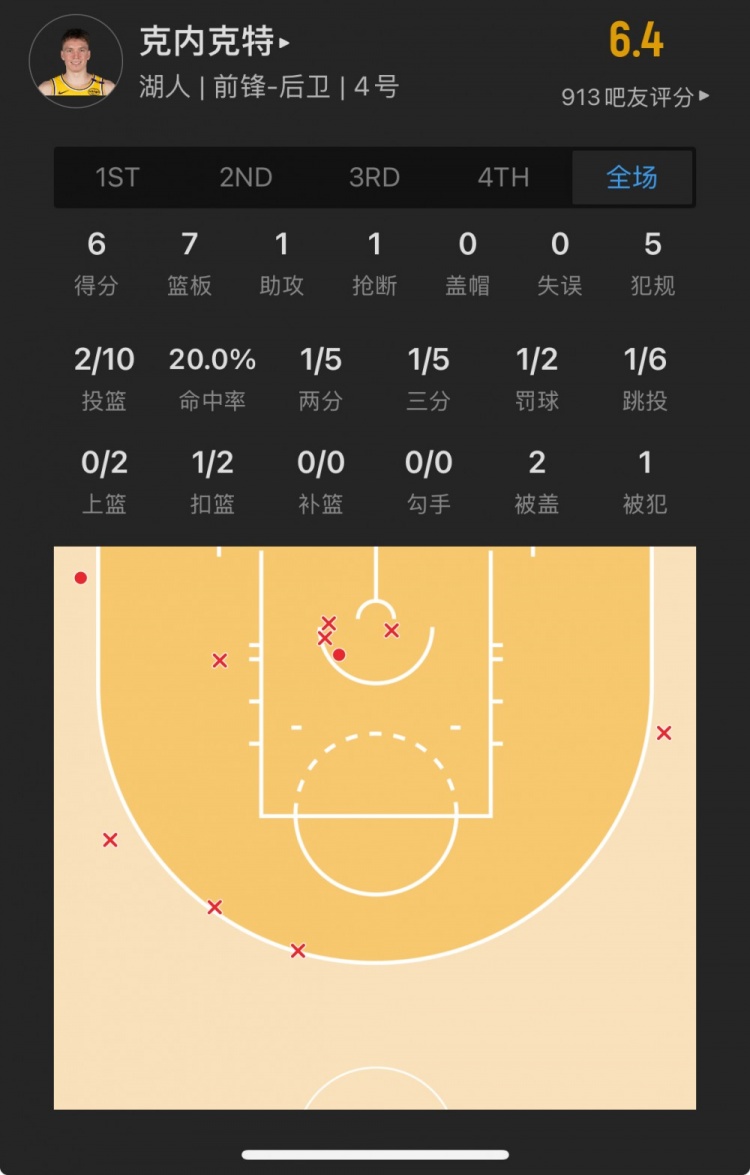 - 【菜鸟】39号秀13分6板 克内克特10中2 探花5分 小崔河村短暂登场