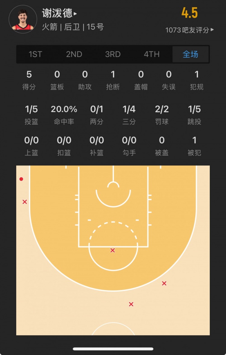 火箭探花秀 里德-谢泼德 登场9.6分钟