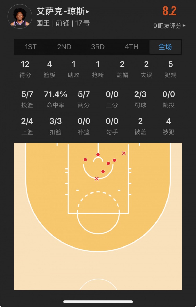 国王落选秀 艾萨克-琼斯 登场19.4分钟