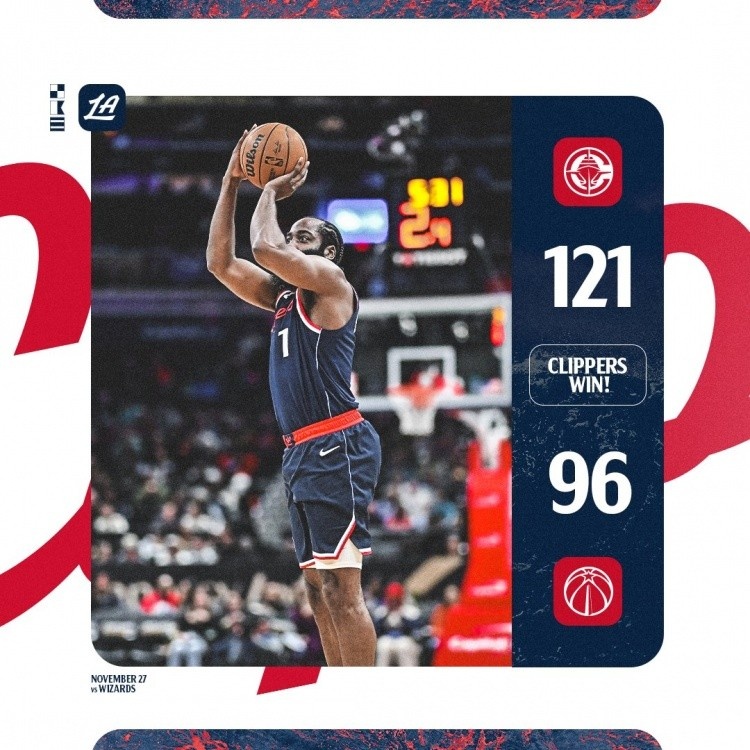 - 2024年11月28日 哈登三节打卡43+7&首节23分 祖巴茨18+16 快船送奇才13连败