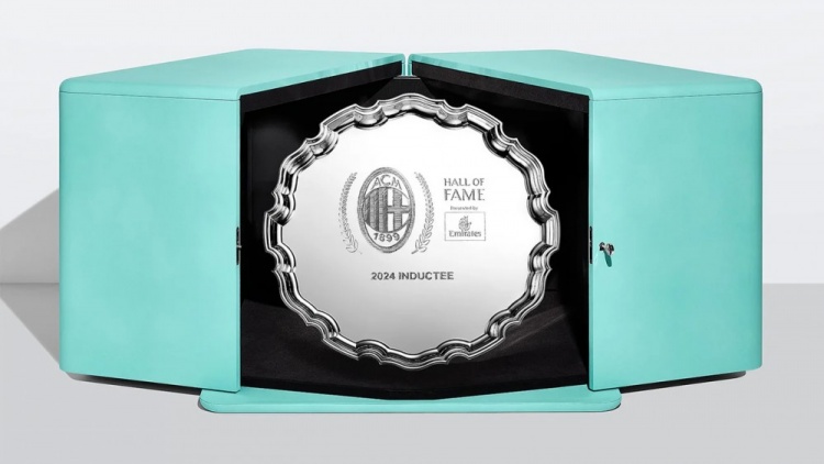 奖杯将作为无与伦比的卓越象征颁发给每一位入选者,体现AC米兰的价值和传统。奖杯设计永恒精致,由蒂芙尼公司的工匠在罗德岛坎伯兰的蒂芙尼空心器皿工坊用纯银打造而成。12英寸纯银托盘上印有AC米兰名人堂和阿联酋航空的徽标,并镌刻有入选传奇人物的姓名,体现了精致与传承。这件作品代表了足球的宏伟与精湛工艺的完美结合,是对AC米兰最伟大偶像的永恒致敬。