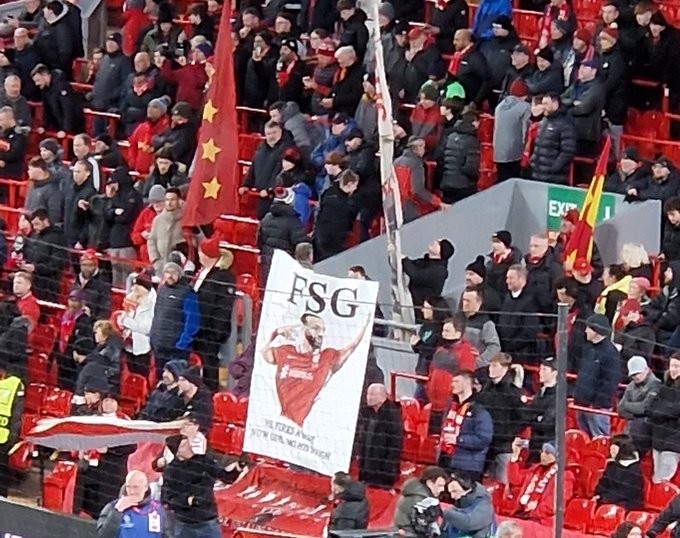 - 利物浦球迷打出海报声援萨拉赫:芬威快给他合同!