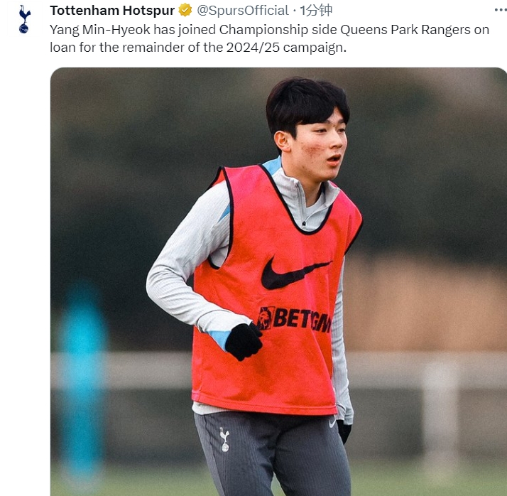 - 官方:热刺18岁边锋梁民革租借加盟英冠球队女王公园巡游者