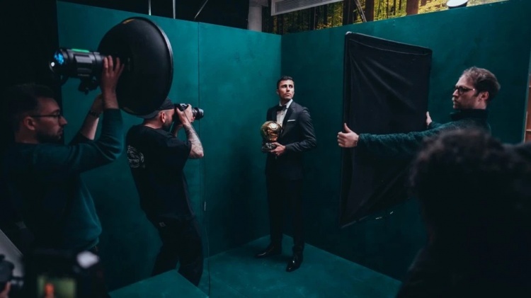 队史第一座金球奖!曼城官方为罗德里拍摄金球写真