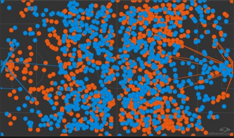 对比之下,马竞的足球哲学则更加偏向于在稳定防守后,完成的中路控制及推进保障,这通过他们传递的路线图也能够看出,中场的衔接对马竞来说可是太重要了,能不能顺畅的过了中线,将会决定他们接下来向前推进的效率。对此,后腰的作用格外重要。