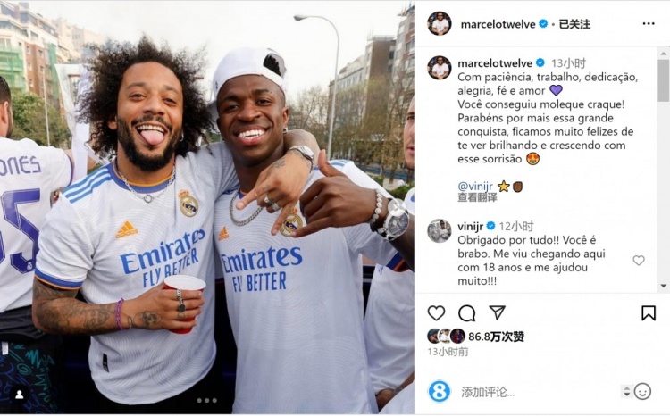 - 马塞洛社媒:祝贺维尼修斯又取得一项伟大成就