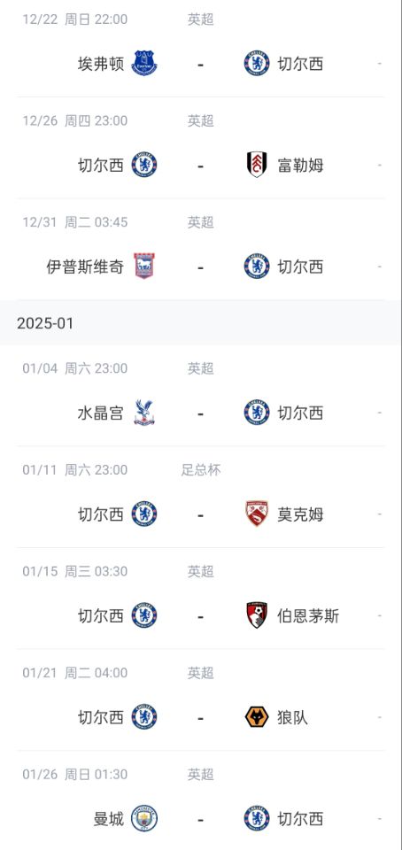 - 超长连胜真来了!切尔西各项赛事已8连胜,接下来7场对决无强队