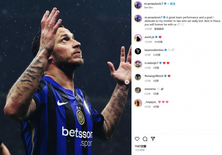 - 阿瑙托维奇社媒:全队交出顶级表现,要将进球献给离世的岳母