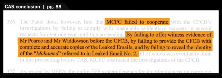 CAS判决中显示,曼城未能提供相应的证据,确实阻碍了CFCB的调查。