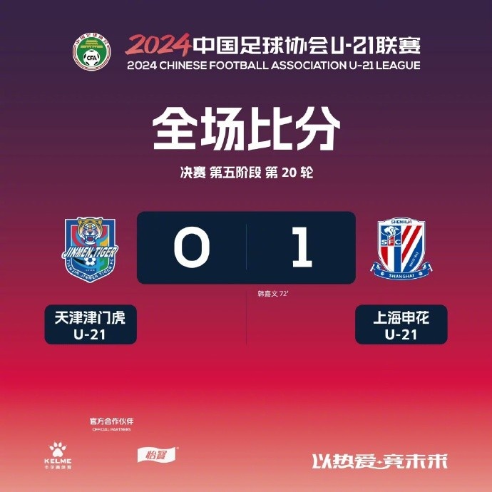 - U21联赛第20轮:上海申花1-0战胜天津津门虎