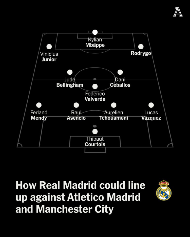 - TA预测皇马德比战首发:劳尔-阿森西奥&琼阿梅尼搭档中卫
