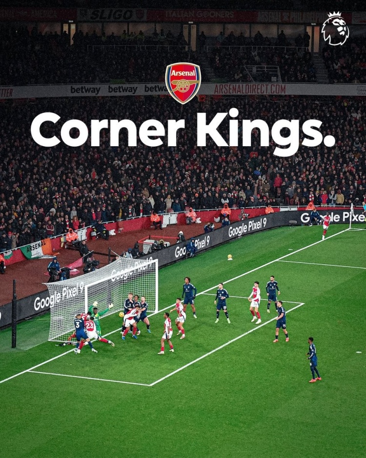 两记头球击溃曼联防线,阿森纳赢得了英超官方“角球之王”的认证。