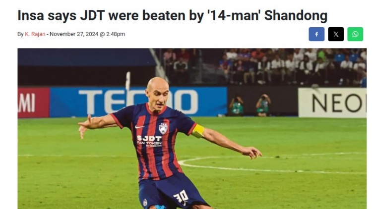- 柔佛新山队长不满判罚:我们对阵的是一支有13、14名球员的球队