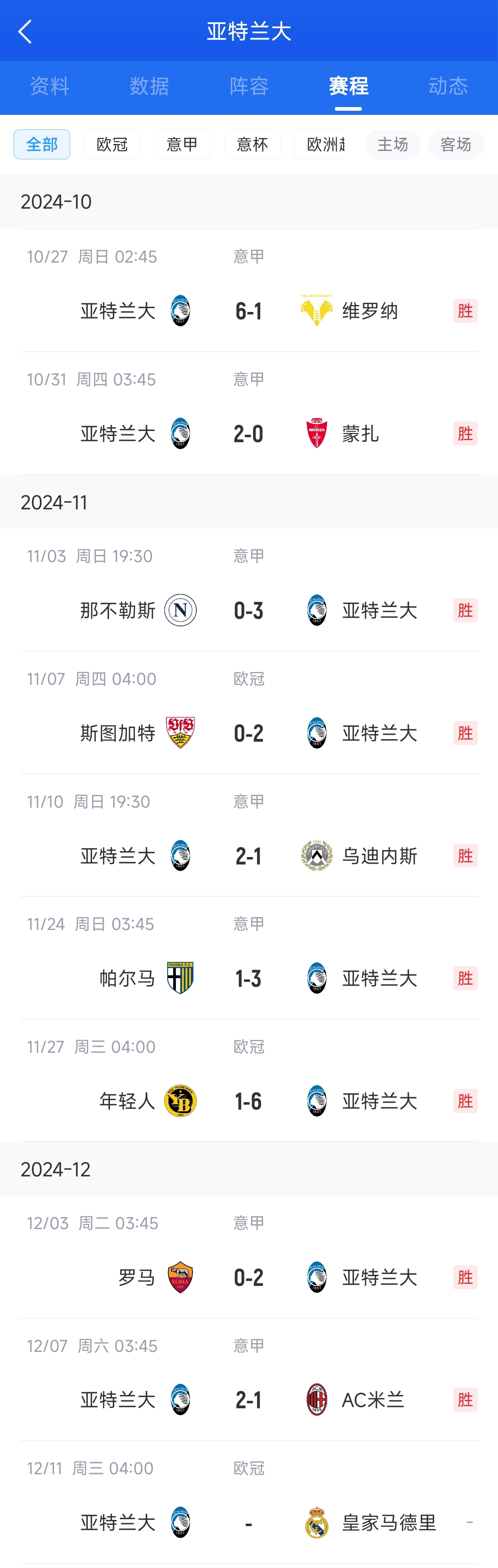 - 皇马扛得住吗?亚特兰大9连胜&场均轰3球,意甲冲至第1+欧冠不败