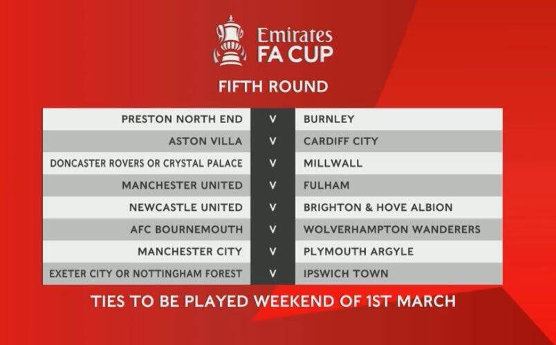 - 足总杯16强对阵:曼联对阵富勒姆 曼城将战普利茅斯 纽卡碰布莱顿